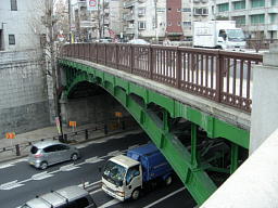昭和7年(1932)の架橋で、橋の上を目白通が走っており、東京初の立体交差だという。ノスタルジックな石橋や小綺麗な吊橋とは違った、大地を支えるアトラスのような力強さをみなぎらせた鋼のアーチが頼もしい。
