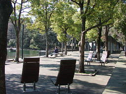 多摩中央公園のベンチは、「なぜ?」と言うほど背が高い。頭まですっぽりとはいる背もたれに重役のようにふんぞり返って、道行く若者に「あぁ、ちょっと君々」なんて言ってみたくなる。