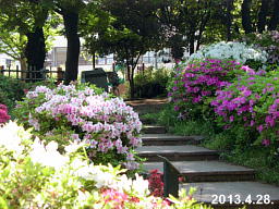 池袋本町公園には、豊島区政60周年を記念して開かれた「アゼリアフェスティバル'92」の際に日本各地から贈られたツツジの築山がある。地味な児童公園のようでいて、意外に楽しめる穴場スポットだ。