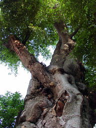 大國魂神社の参道(馬場大門欅並木)に大きく枝を広げた木々に比べれば、背も低くずんぐりむっくりで全然パッとしないけれど、年輪を重ねた樹幹は太くいのちの迫力を感じさせる外観だ。老いたとは言え、三度の火事をくぐり抜け、樹幹が空洞になっても緑の葉を茂らせる生命力には目を見はる。年老いて背中は曲がってしまったが、節くれだった手に鍬を持って今日も黙々と畑に出て行く老爺という感じだろうか。