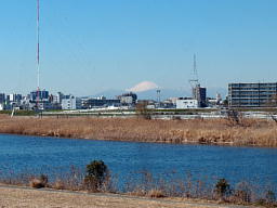 多摩川大橋下流の東京側、対岸に高い電波塔が見える辺りは空が広くて気持ちのいい区間だ。高い建物も少ないので富士山がよく見える。