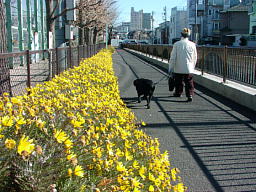 その神田川沿いの公園で、花の少ない今の季節に、鮮やかな黄色の花を見つけて思わず足を止めた。なんという名前なのか、名札を探してウロウロしていたら散歩の方に声を掛けられた。「きれいな花ですね」。みんなきれいな花が咲いているとうれしいのだな。