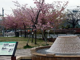 広場の案内には15種類の桜が写真入りで紹介されていた。東側に続く二ヶ村緑道と連繋して、かつてここに流れていた二ヶ村用水沿いにたくさんの桜が咲く様子をイメージした公園になっているようだ。