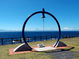 サンセットパームライン脇の空き地には、地面に大きく「セッティング場所」と書いてある。ダイビングの準備をするところだ。その前には青い大きな円に鐘が下がったモニュメント。海で亡くなったダイバーを偲ぶBuddy's Bellが建っている。少し斜めから見ると、ちょうど円の中央に富士山がきれいに見えた。