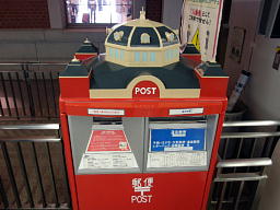 一つは何の変哲もない通常の角型だが、丸の内中央口改札の内側にある方は駅舎の形をしている。駅舎の屋根を模ったオブジェを王冠のようにかぶり、下部には辰野式の縞模様。このポストに投函すると、東京駅の風景印を押してもらえるというから、観光客狙いなのかな。